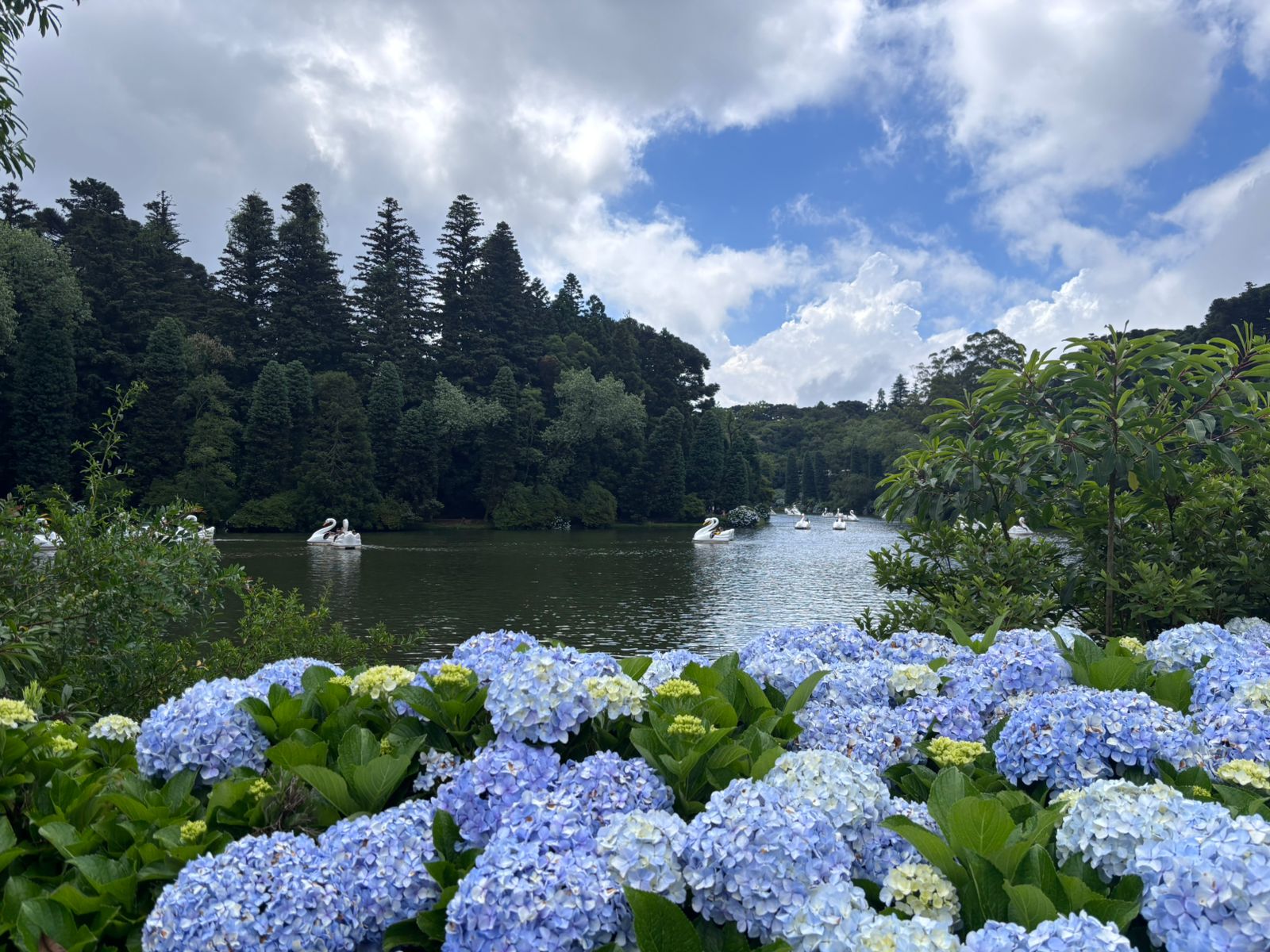 E no meio de tudo isso, o Lago Negro segue como refúgio de tranquilidade e beleza. Passear ao redor de suas águas, com as hortênsias refletidas na superfície espelhada, é como entrar em um quadro vivo. Os pedalinhos, os pinheiros importados da Europa e a calmaria do lugar tornam qualquer momento ali inesquecível. E depois de um dia assim, nada melhor do que relaxar na nossa piscina aquecida e coberta, faça chuva ou sol, um convite ao descanso com conforto e estilo.